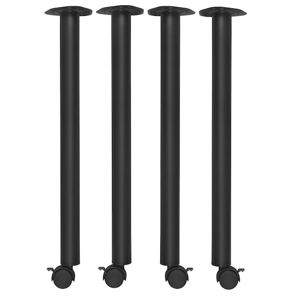 Give everyone more room with Kee tables. These post legs come four to a set and include locking casters, which makes moving the whole table easy. They can be attached to any tabletop and assembly is a snap with just a few screws. A sleek alternative to pedestal style bases, this set of post legs comes in a classic black to match any decor. The legs are constructed of tubular steel with locking hard plastic casters on the bottom of each leg.