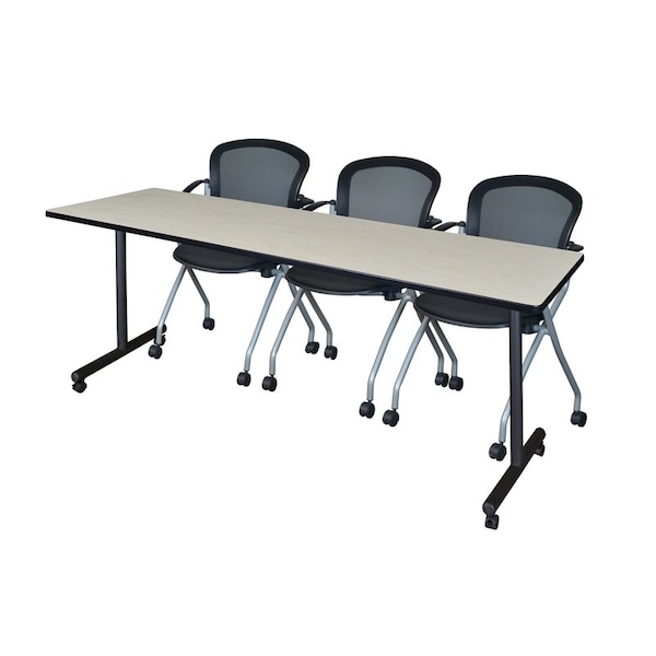 Regency Kobe 84 x 24 in. Mobile T-Base Training Table- Maple, 2 Cadence Nesting Chairs
