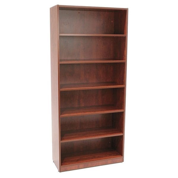 Bookcase, Product Type Bookcase, Material Laminate, Number of Dividers 5, Overall Height 71 in, Overall Depth 14 in, Overall Width 32 in, Caster Type Not Applicable, Color Cherry, Back Style Closed, Number of Shelves 5, Weight Capacity 50 lb, Shelf Adjustment Increment 1 in, Standards ANSI/BIFMA, Shelf Capacity 100 lb, Assembly Unassembled, Caster Material Not Applicable, Distance Between Dividers Not Applicable, Divider Adjustment Increment Not Applicable, Dividers per Shelf Not Applicable