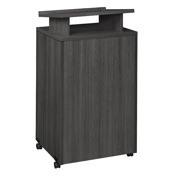 Make presentations memorable with Legacy's Conference collection! This freestanding lectern moves on four casters and can be conveniently placed anywhere in any room. A podium shelf is angled towards the speaker and has a raised edge along the bottom to keep reference material in place. There are two fixed shelves on the back of the lectern to keep supplies or personal items out of view of the audience. Finished in an stylish Ash Grey laminate, this lectern coordinates with the rest of the Legacy conference collection. The Legacy collection is constructed of a 1-inch thick thermal fused melamine laminate with a 3-millimeter commercial grade matching PVC edge. Laminates are scratch, stain and scald resistant. Legacy casegoods are backed by a 10-year limited manufacturer's warranty.