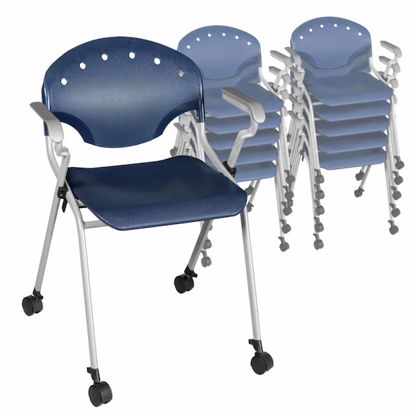 Rico Classroom Training Mobile Stack Chair with Arms - Navy Blue, 11PK