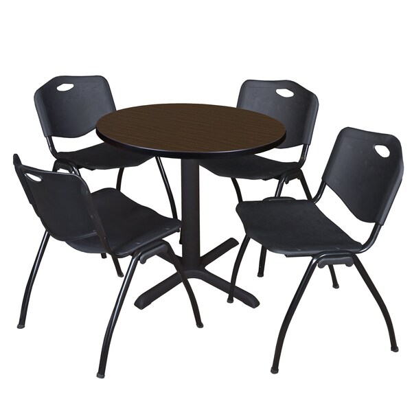 Round Cain Breakroom Table W/ 4 M Stack Chairs, 30 in W, 30 in L, Neo Walnut