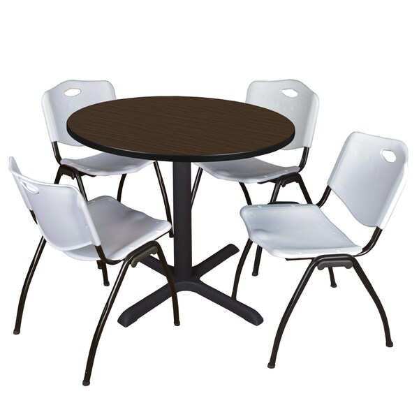 Round Cain Breakroom Table W/ 4 M Stack Chairs, 42 in W, 42 in L, Neo Walnut