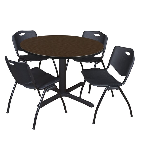 Round Cain Breakroom Table W/ 4 M Stack Chairs, 48 in W, 48 in L, Neo Walnut