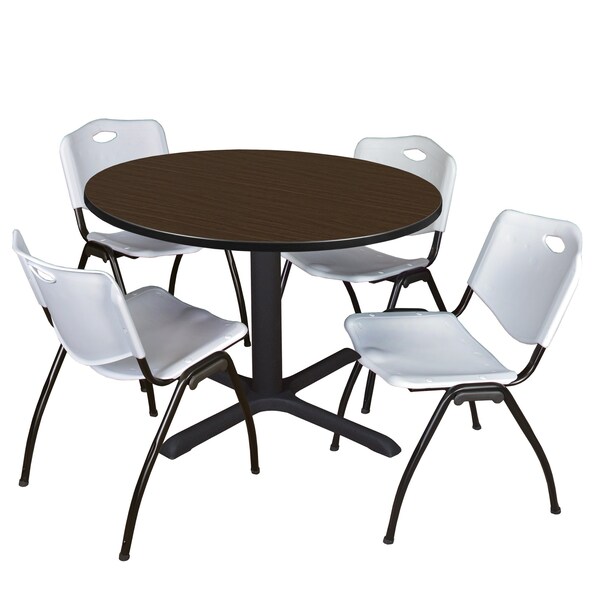 Round Cain Breakroom Table W/ 4 M Stack Chairs, 48 in W, 48 in L, Neo Walnut