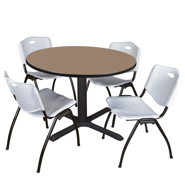 Round Cain Breakroom Table W/ 4 M Stack Chairs, 48 in W, 48 in L, Noble Oak