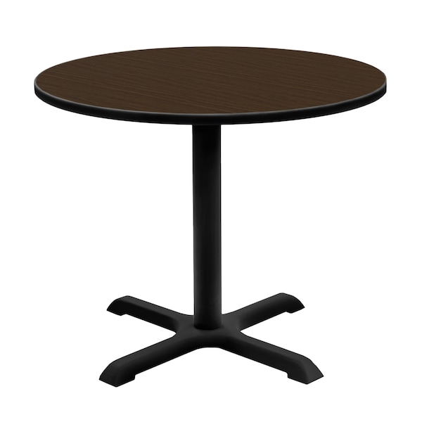 Round Cain Small X-Base Breakroom Table, 30 in W, 30 in L, Neo Walnut