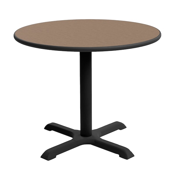Round Cain Small X-Base Breakroom Table, 30 in W, 30 in L, Noble Oak