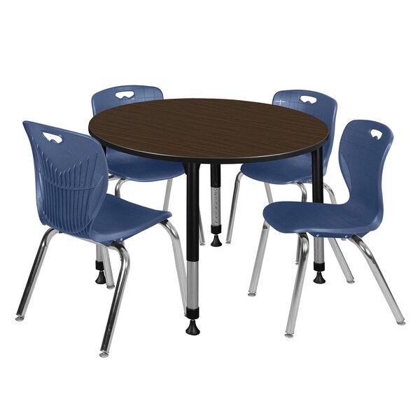 Round Kee Adjustable Classroom Table W/ 4 Andy Stack Chairs, 48 in W, 48 in L, Neo Walnut