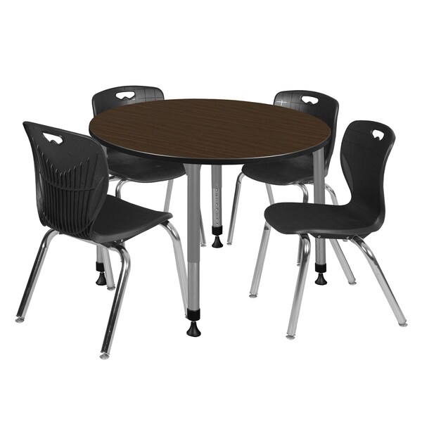 Round Kee Adjustable Classroom Table W/ 4 Andy Stack Chairs, 48 in W, 48 in L, Neo Walnut