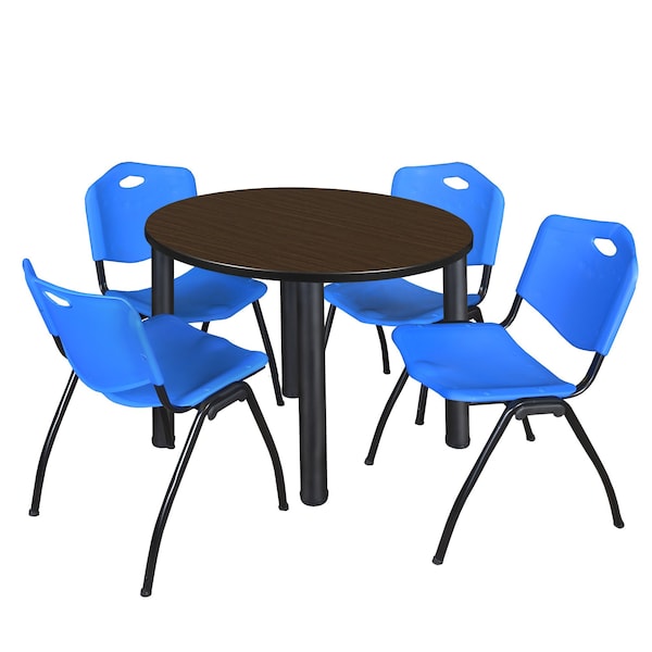 Round Kee Breakroom Table W/ 4 M Stack Chairs, 36 in W, 36 in L, Neo Walnut