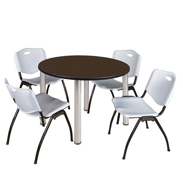 Round Kee Breakroom Table W/ 4 M Stack Chairs, 42 in W, 42 in L, Neo Walnut