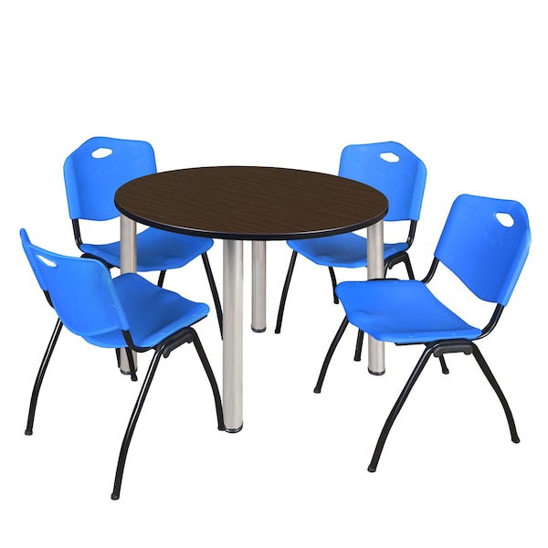 Round Kee Breakroom Table W/ 4 M Stack Chairs, 48 in W, 48 in L, Neo Walnut