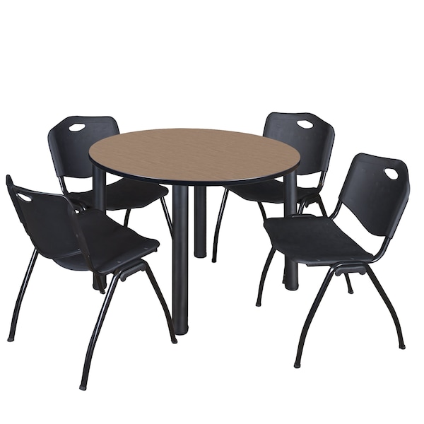 Round Kee Breakroom Table W/ 4 M Stack Chairs, 48 in W, 48 in L, Noble Oak