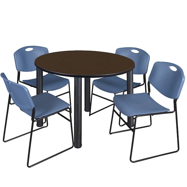 Round Kee Breakroom Table W/ 4 Zeng Stack Chairs, 42 in W, 42 in L, Neo Walnut