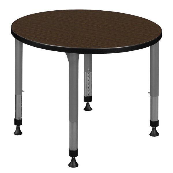Round Kee Height Adjustable Classroom Activity Table, 30 in W, 30 in L, Neo Walnut