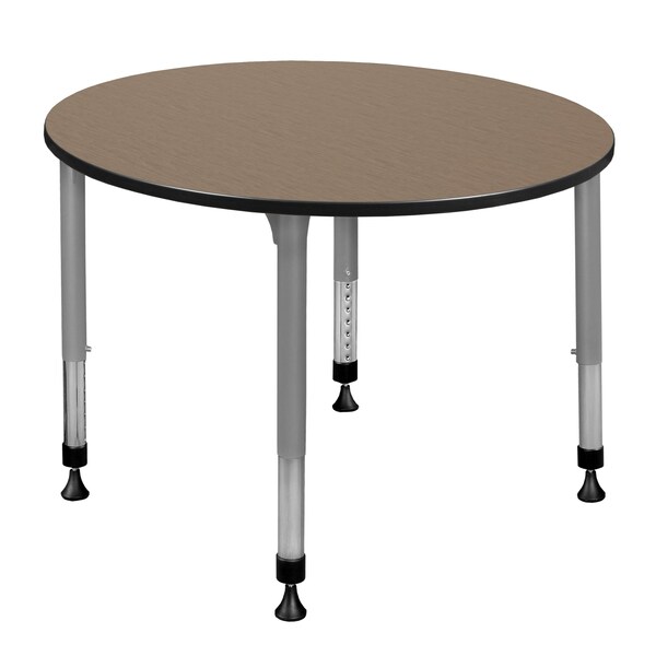 Round Kee Height Adjustable Classroom Activity Table, 48 in W, 48 in L, Noble Oak