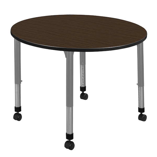 Round Kee Height Adjustable Mobile Classroom Activity Table, 48 in W, 48 in L, Neo Walnut