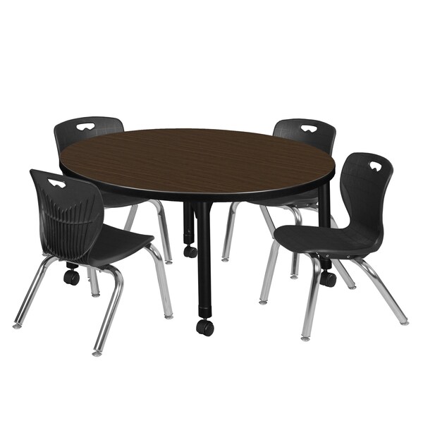 Round Kee Mobile Adjustable Classroom Table W/ 4 Andy Chairs, 36 in W, 36 in L, Neo Walnut