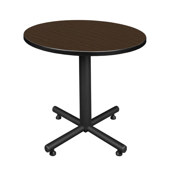 Round Kobe X-Base Breakroom Table, 30 in W, 30 in L, Neo Walnut