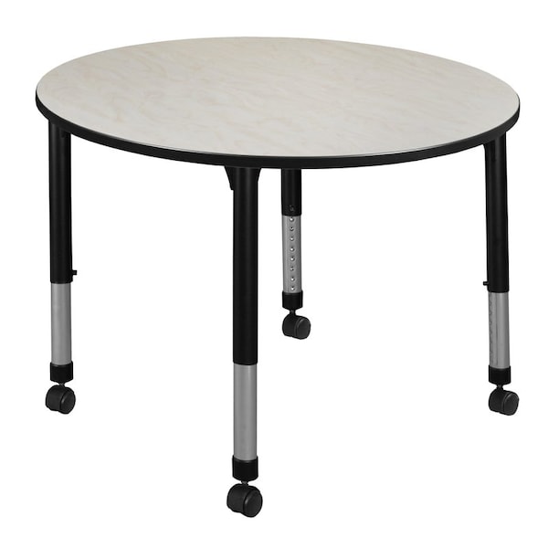 Round Mobile Tables, 48 W, 48 L, 23-34 H, Wood, Metal, Maple
