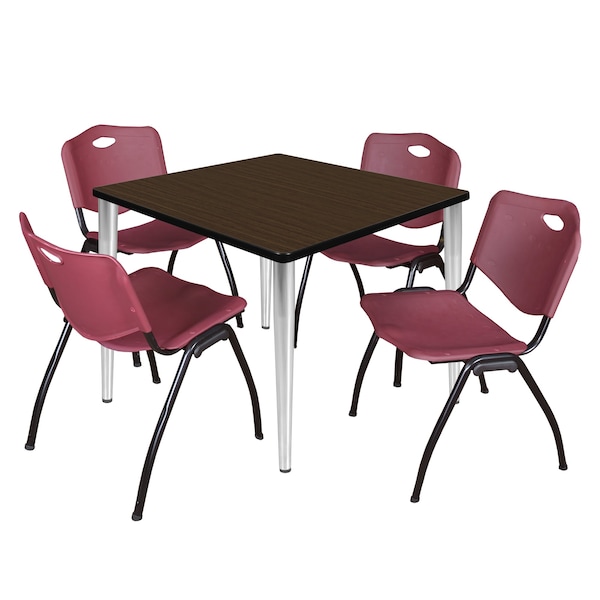 Square Kahlo Breakroom Table W/ 4 M Stack Chairs, 42 in W, 42 in L, Neo Walnut