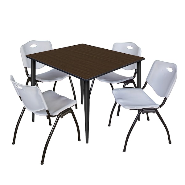 Square Kahlo Breakroom Table W/ 4 M Stack Chairs, 48 in W, 48 in L, Neo Walnut