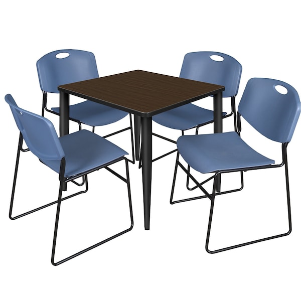 Square Kahlo Breakroom Table W/ 4 Zeng Stack Chairs, 30 in W, 30 in L, Neo Walnut