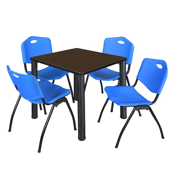 Square Kee Breakroom Table W/ 4 M Stack Chairs, 30 in W, 30 in L, Neo Walnut