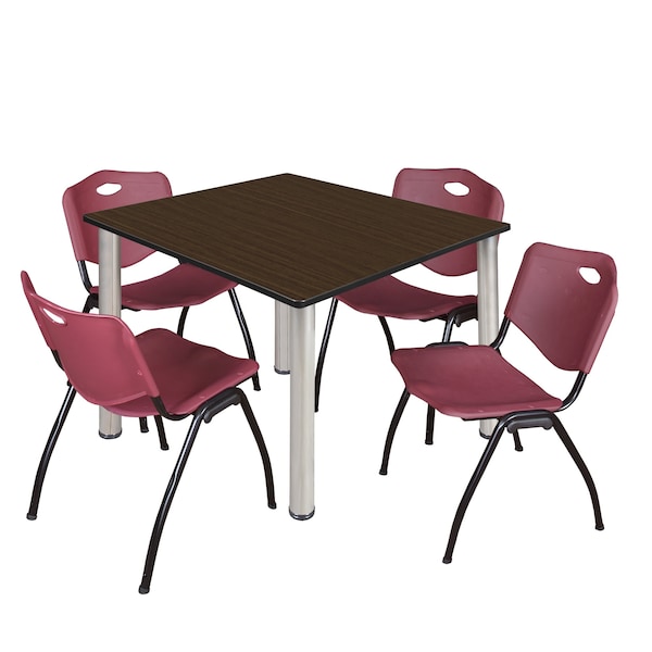 Square Kee Breakroom Table W/ 4 M Stack Chairs, 48 in W, 48 in L, Neo Walnut