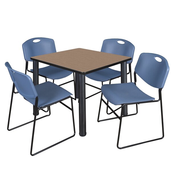 Square Kee Breakroom Table W/ 4 Zeng Stack Chairs, 42 in W, 42 in L, Noble Oak