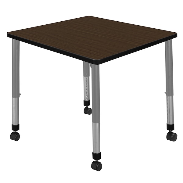Square Kee Height Adjustable Mobile Classroom Activity Table, 30 in W, 30 in L, Neo Walnut