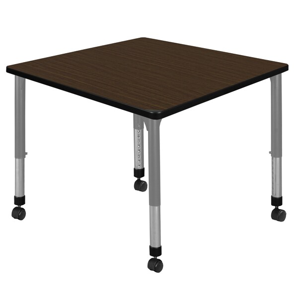 Square Kee Height Adjustable Mobile Classroom Activity Table, 36 in W, 36 in L, Neo Walnut
