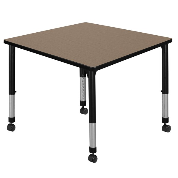 Square Kee Height Adjustable Mobile Classroom Activity Table, 36 in W, 36 in L, Noble Oak
