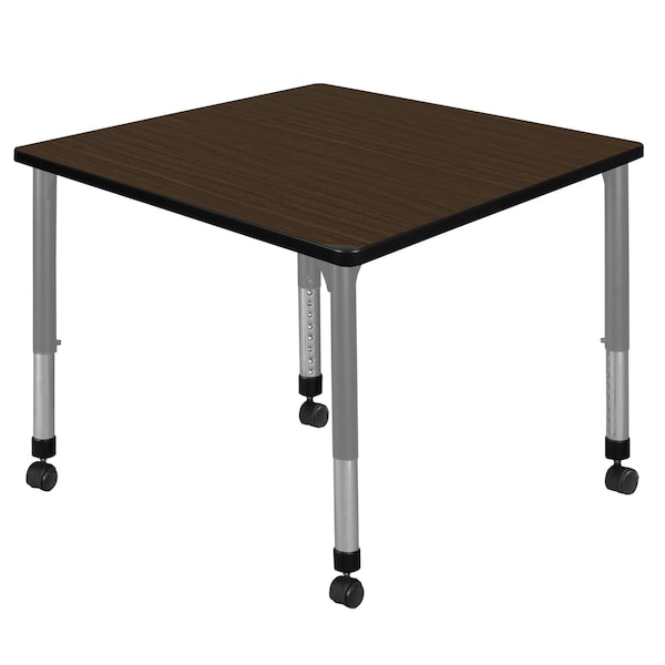 Square Kee Height Adjustable Mobile Classroom Activity Table, 42 in W, 42 in L, Neo Walnut
