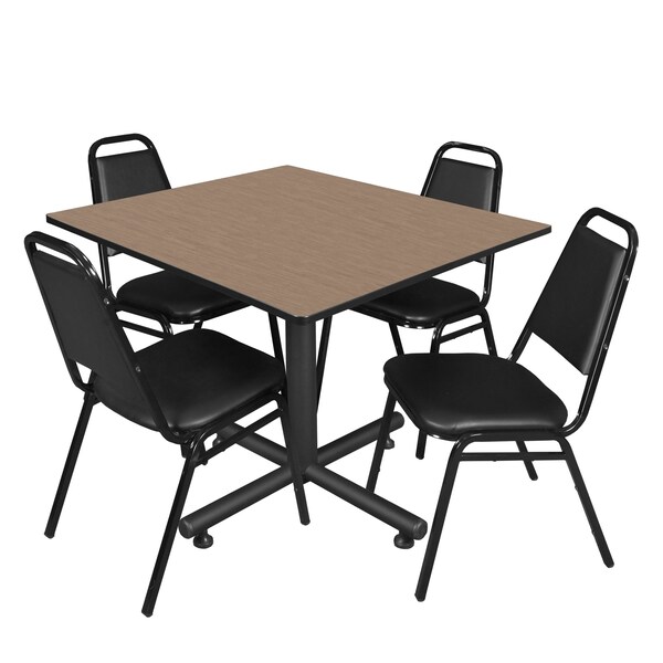 Square Kobe Breakroom Table W/ 4 Restaurant Stack Chairs, 48 in W, 48 in L, Noble Oak