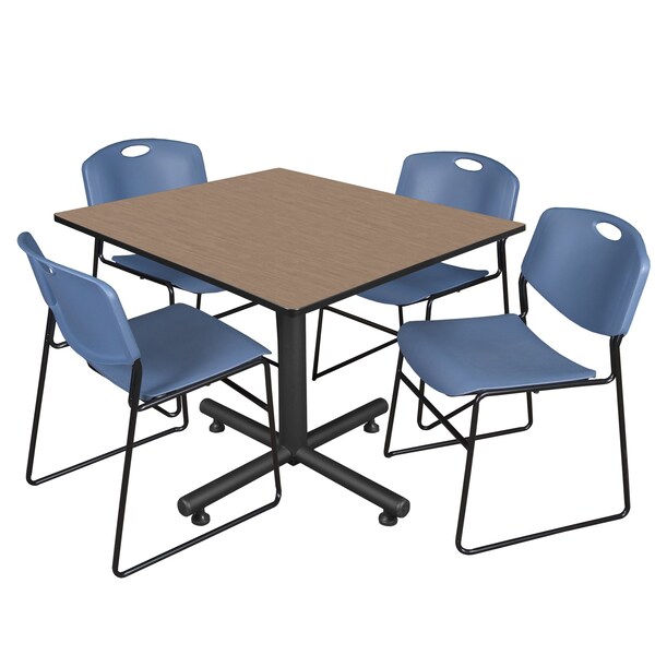 Square Kobe Breakroom Table W/ 4 Zeng Stack Chairs, 48 in W, 48 in L, Noble Oak