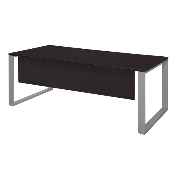 Build your office from the ground up with the Structure Collection. These versatile tables can double as desk shells for a completely modern office look. Open leg bases are constructed of durable metal and finished in a stylish matte grey to match any decor. Tabletops mount to offsets on the legs and give them a modern "floating" look. A 14-inch matching modesty panel provides kneespace privacy. The 66 x 36-inch tabletop is constructed of a thermal fused melamine laminate that is 1-inch thick and finished with a black edge band. Laminates are scratch, stain and scald resistant and wipe clean easily. Leveling glides keep the tabletop level and are easy to adjust.