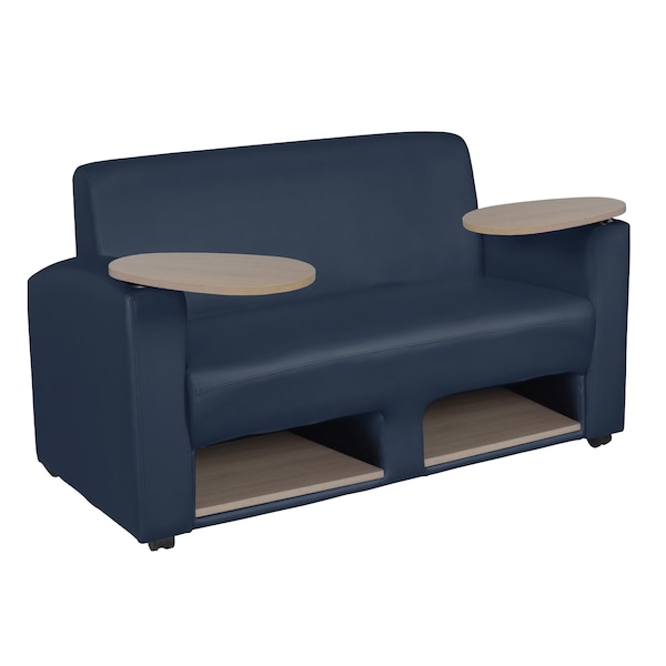 Supernova Tablet Arm Loveseat w/ Storage- Navy Blue/Noble Oak