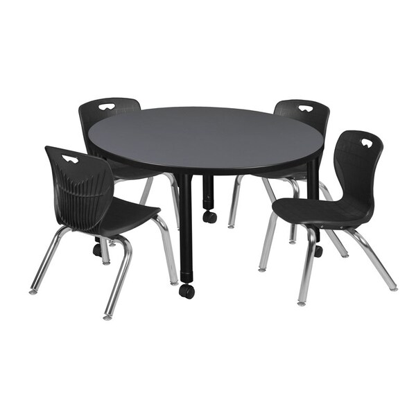 Tables > Height Adjustable > Round Mobile Table & Chair Sets, 42 W, 42 L, 23-34 H, Grey