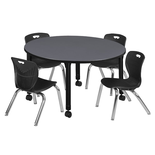 Tables > Height Adjustable > Round Mobile Table & Chair Sets, 48 W, 48 L, 23-34 H, Grey