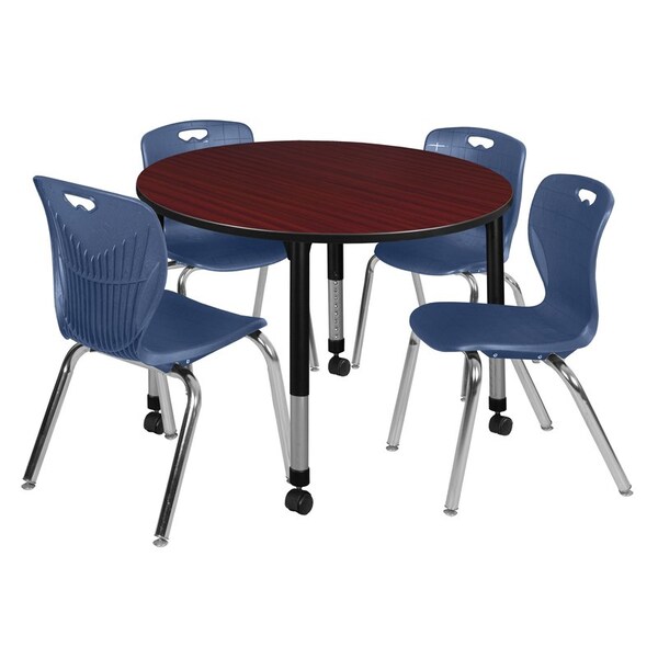 Tables > Height Adjustable > Round Mobile Table & Chair Sets, 48 W, 48 L, 23-34 H, Mahogany