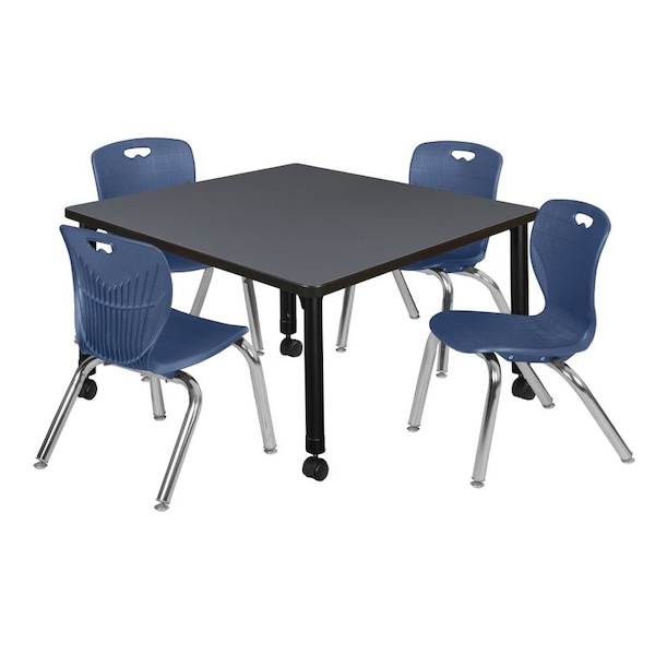 Tables > Height Adjustable > Square Mobile Table & Chair Sets, 36 W, 36 L, 23-34 H, Grey