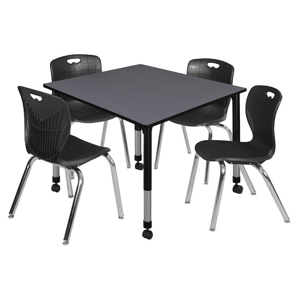 Tables > Height Adjustable > Square Mobile Table & Chair Sets, 48 W, 48 L, 23-34 H, Grey