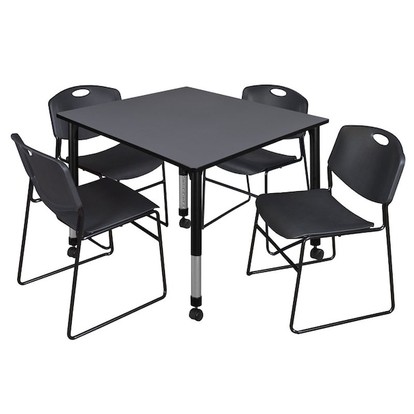 Tables > Height Adjustable > Square Mobile Table & Chair Sets, 48 W, 48 L, 23-34 H, Grey
