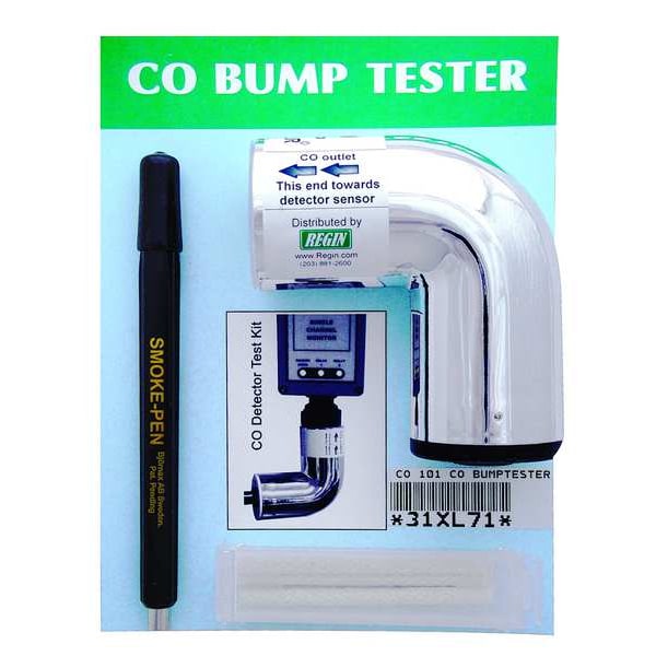 Carbon Monoxide Bump Tester, Includes (6) Wicks, Filter and Applicator, Smoke Pen, Product Type CO Bump Tester, For Detector Type CO Detector, For Use With Mfr. No. CO-R, Gas Contents Carbon Monoxide, Gas Produced 800 to 1000 ppm Filtered CO, Manufacturer Warranty Length 1 yr, Maximum Operating Temperature 400 Degrees F, Minimum Operating Temperature 90 Degrees F, Overall Height 2 in, Overall Length 7.75 in, Overall Width 6.25 in