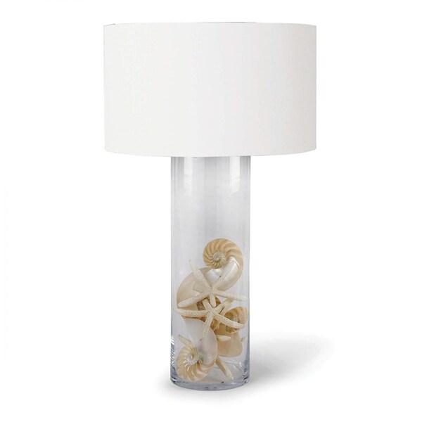 Regina Andrew Glass Cylinder Table Lamp; Dimensions 21W x 34.5H x 21D; Uses one maximum 150 Watt E26 Base Bulb (Not Included)