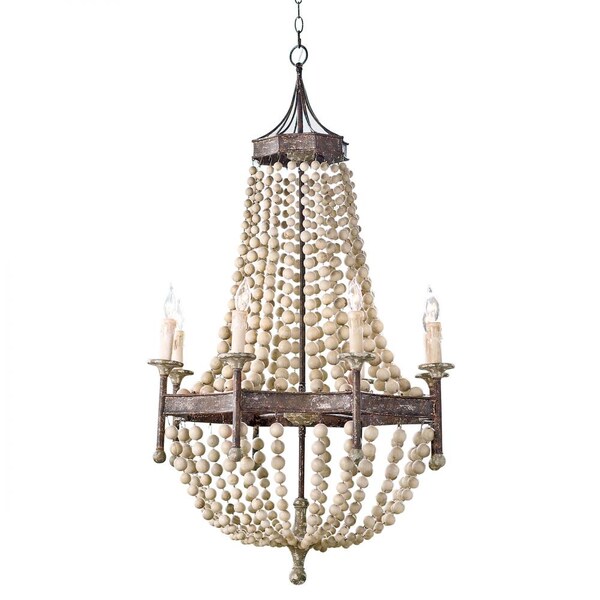Regina Andrew Wood Beaded Chandelier; Dimensions 28W x 51.75H x 28D; Uses eight maximum 60 Watt E12 Base Bulbs (Not Included)