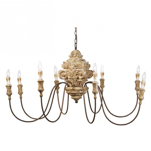 Regina Andrew Wood Carved Chandelier; Dimensions 49W x 31H x 49D; Uses eight maximum 60 Watt E12 Base Bulbs (Not Included)