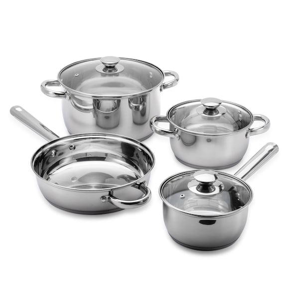 The Registry 7-piece Cookware Set comes with an assortment of belly-shaped cookware including: 2- and 5-quart Dutch ovens with lids, a 1-quart saucepan, and a 10 inch frying pan. The cookware features encapsulated bottoms to ensure even heat distribution and prevent burning. Handles are hollow, and lids are made of tempered vented glass to keep components cool during cooking.